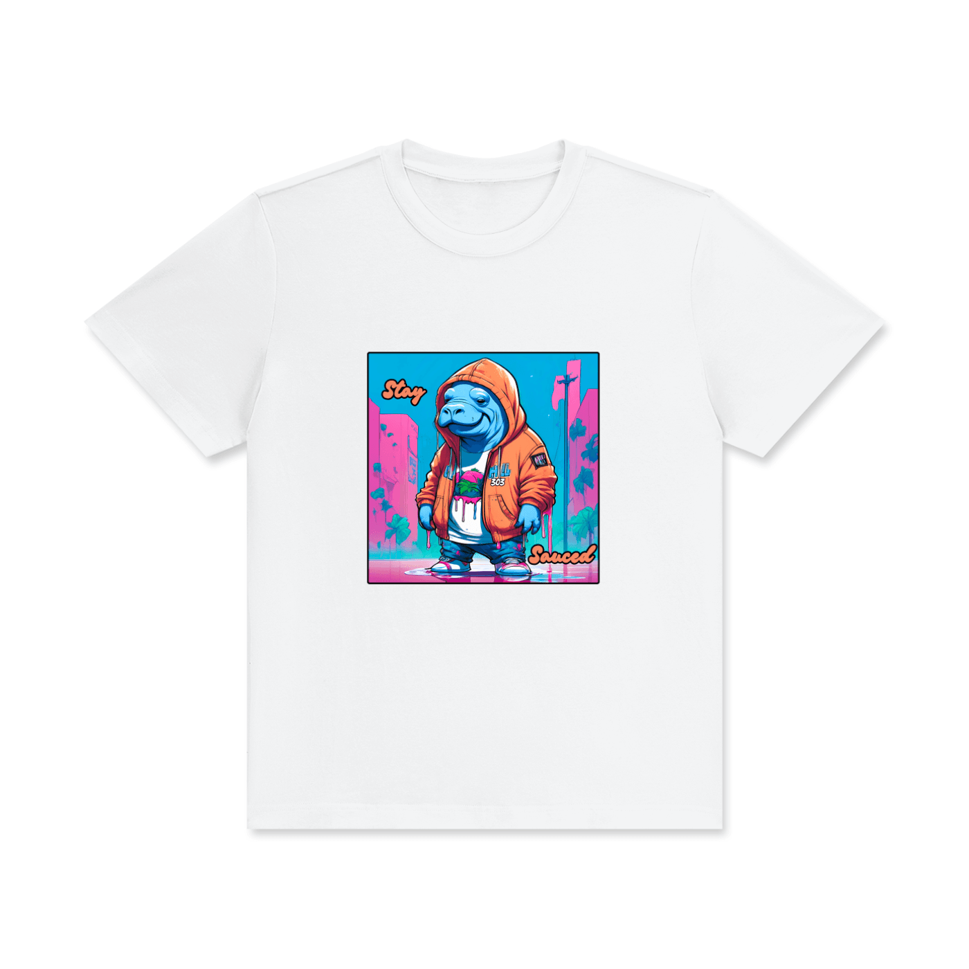 Set against a clean white tee and framed in a square design, this vibrant manatee channels laid-back confidence and quiet power. It’s more than a fit—it’s a frequency.