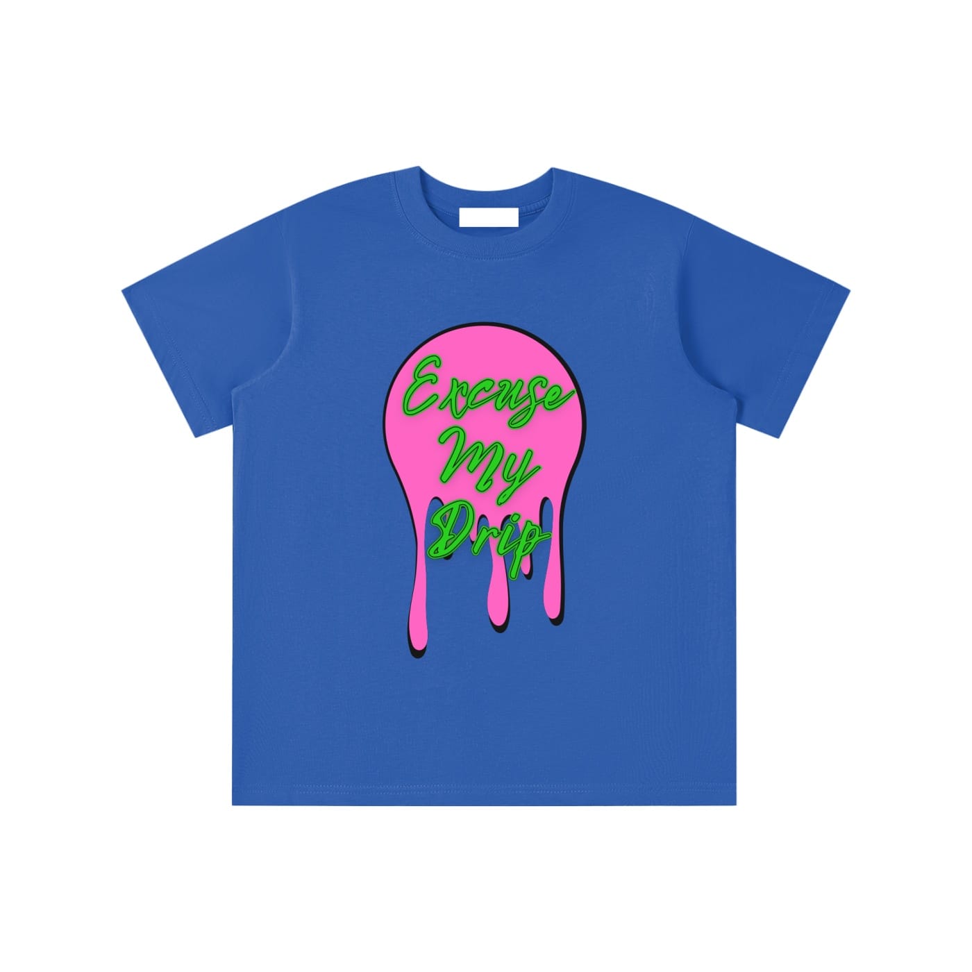 The front graphic features “Excuse My Drip” in bold purple script lettering, paired with a bright yellow dripping circle behind it creating a fun, eye-catching pop of color. It’s playful, expressive, and gives kids a stylish way to rep their drip with pride.